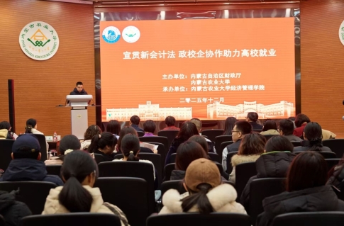 12月9日上午,由内蒙古自治区财政厅与内蒙古农业大学联合举办的“宣贯新会计法 政校企协作助力高校就业”活动在内蒙古农业大学举行。财政厅会计处、自治区高层次财会人才代表及农业大学经济管理学院师生200余人齐聚一堂,用一场别开生面的“政校企”联动,把法律条文变成了学生们的职业竞争力!