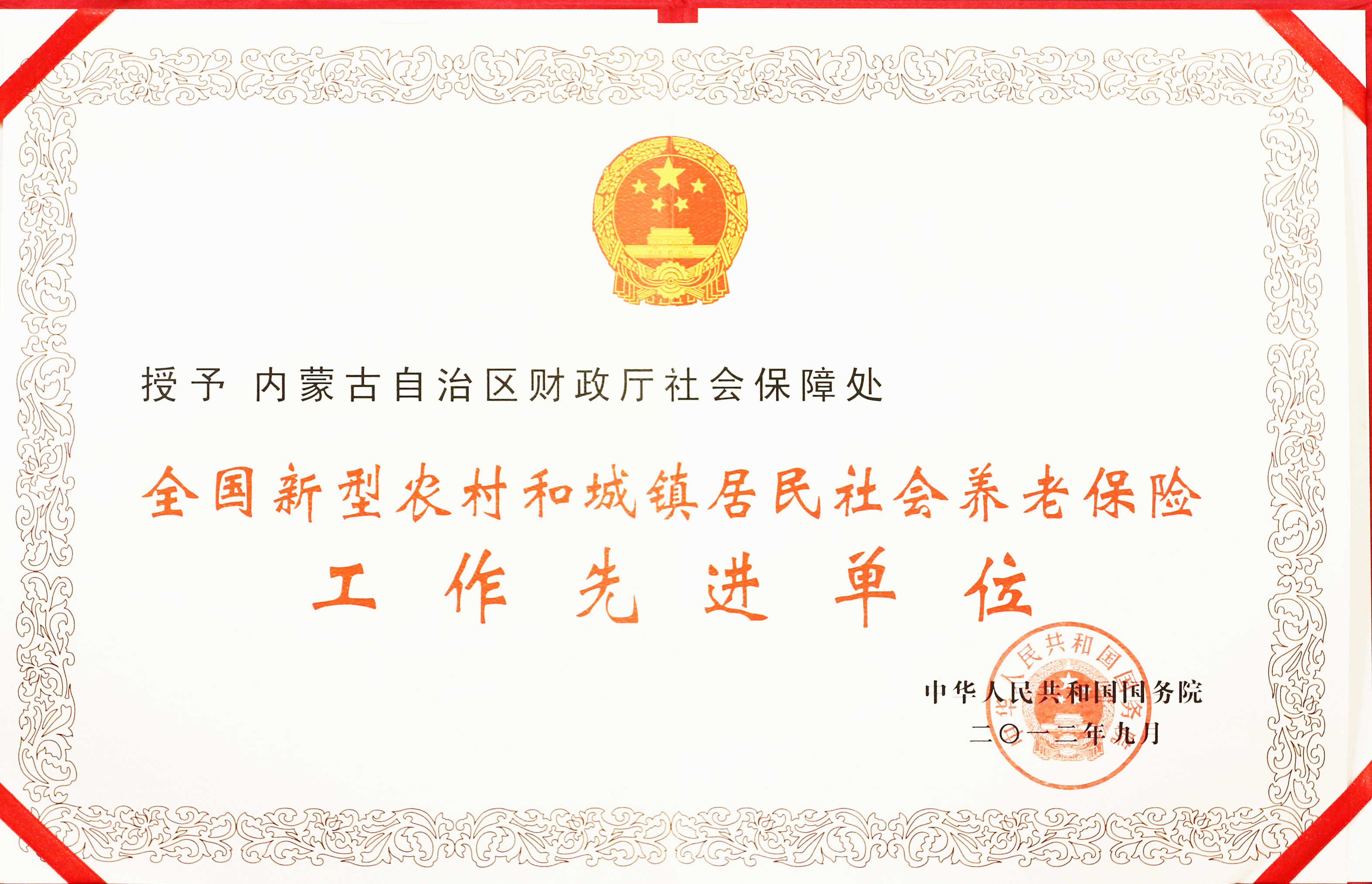 全国新型农村和城镇居民社会养老保险工作先进单位